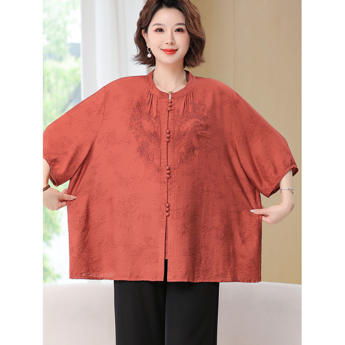 中老年200斤媽媽夏季棉麻襯衫女遮肚大碼開衫短袖亞麻t恤上衣洋氣