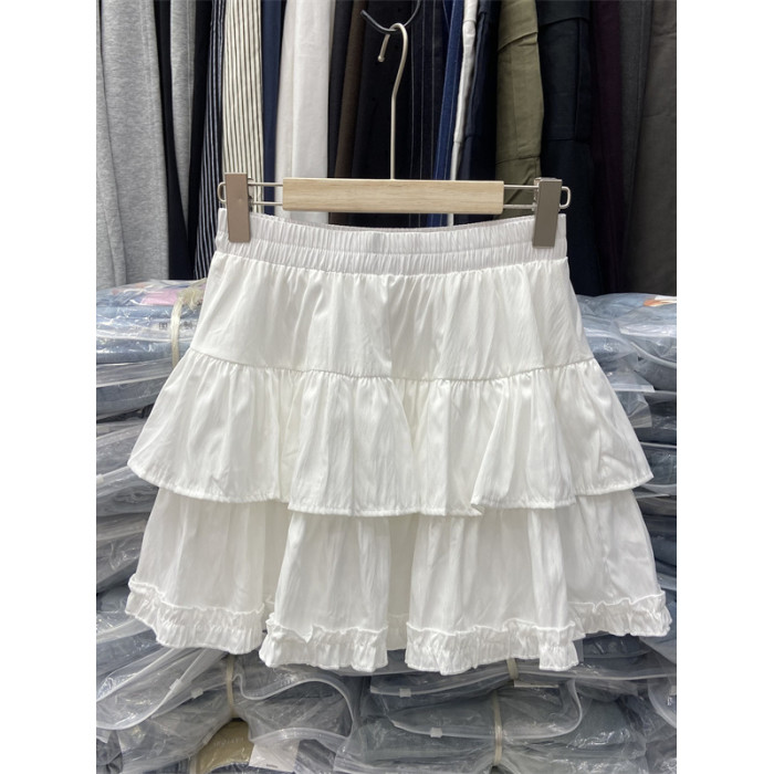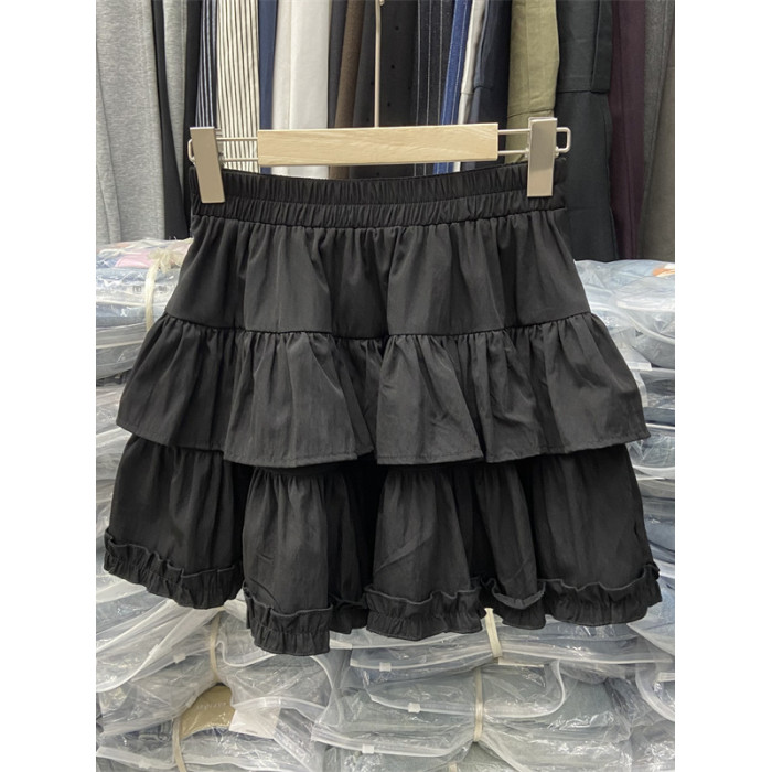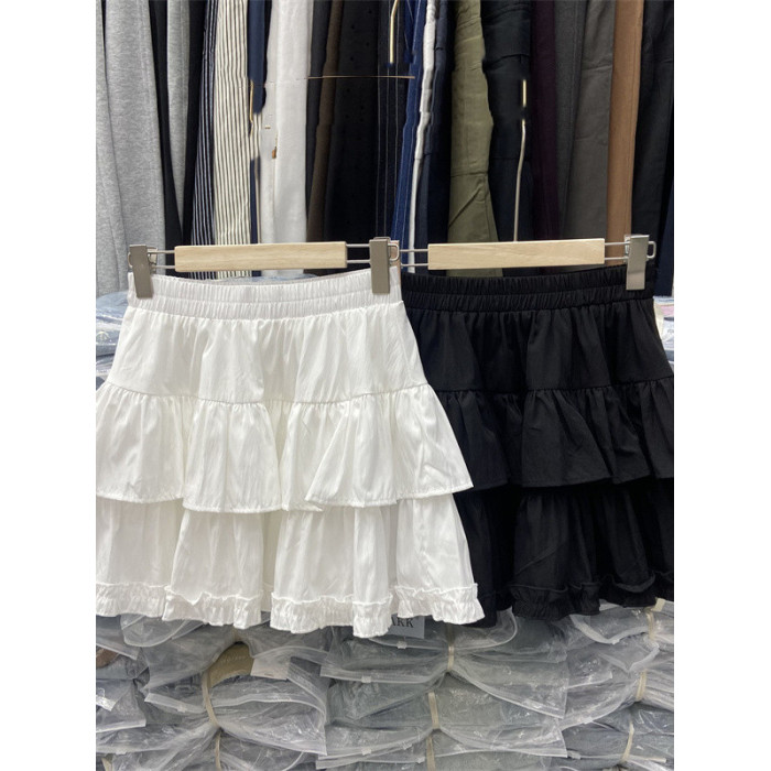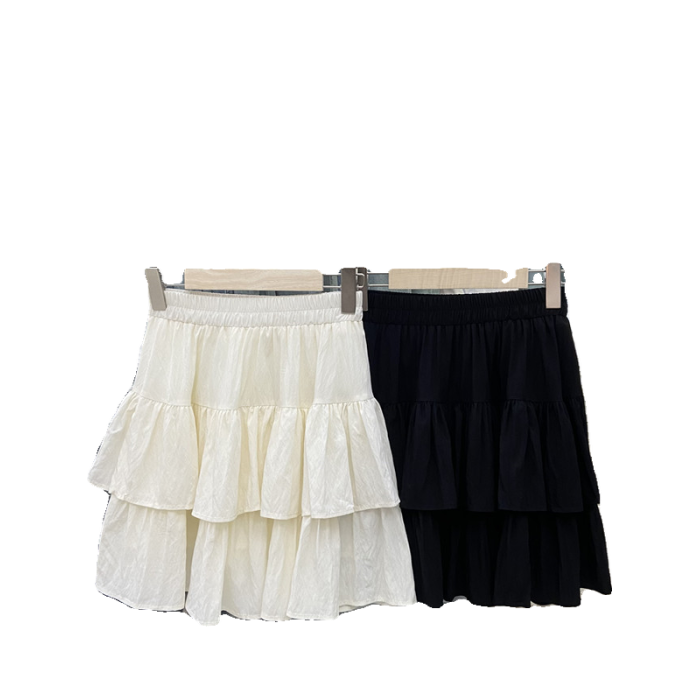 歐貨AKK6221夏款松緊腰百搭荷葉邊半身短裙甜美減齡蓬蓬裙蛋糕裙