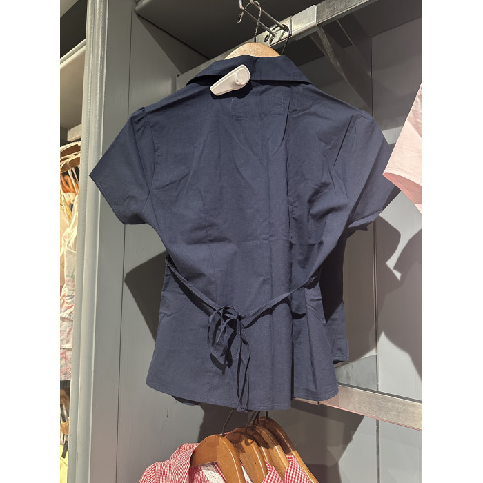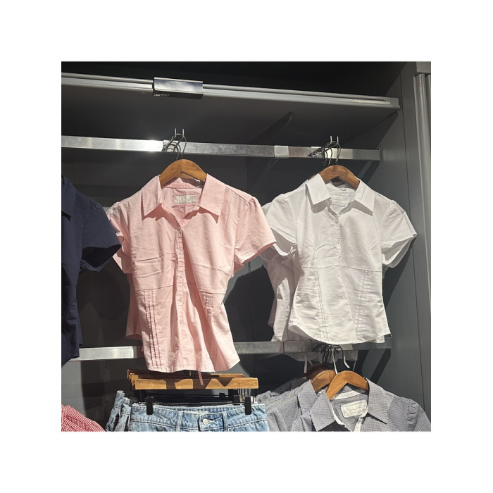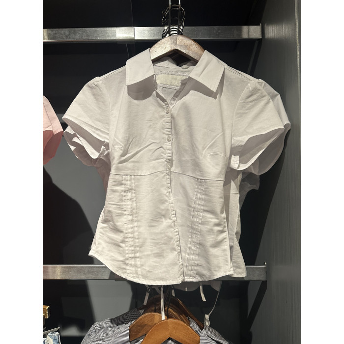 elfin girl 夏款白色短袖襯衣收腰顯瘦休閒polo單排釦襯衫上衣女