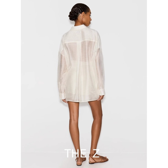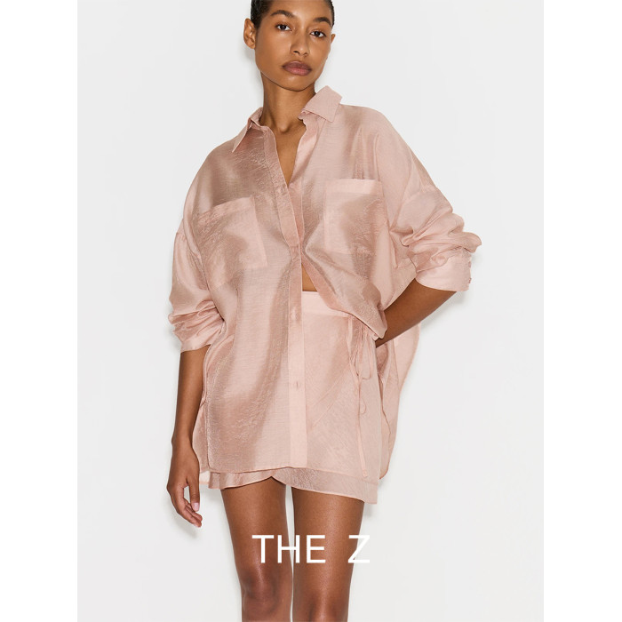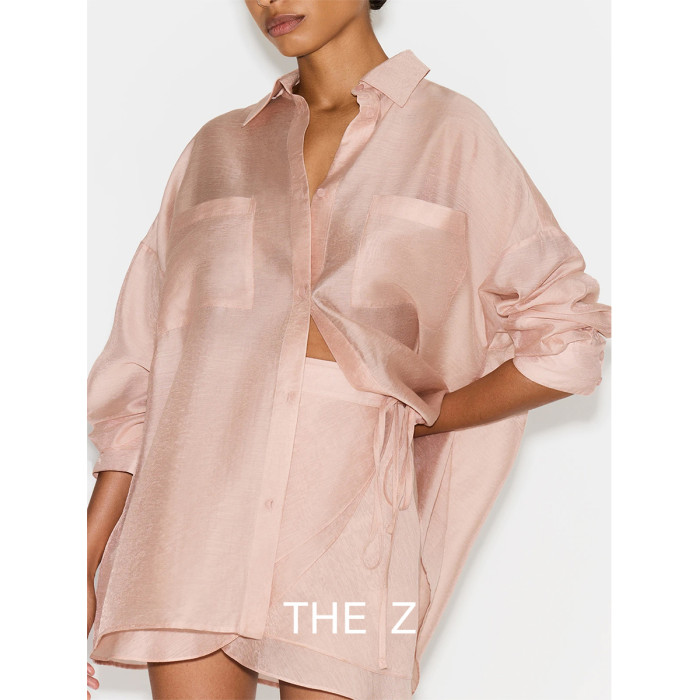TheZ歐貨爆款|輕奢法式白粉色防曬薄款天絲醋酸襯衫上衣半裙套裝