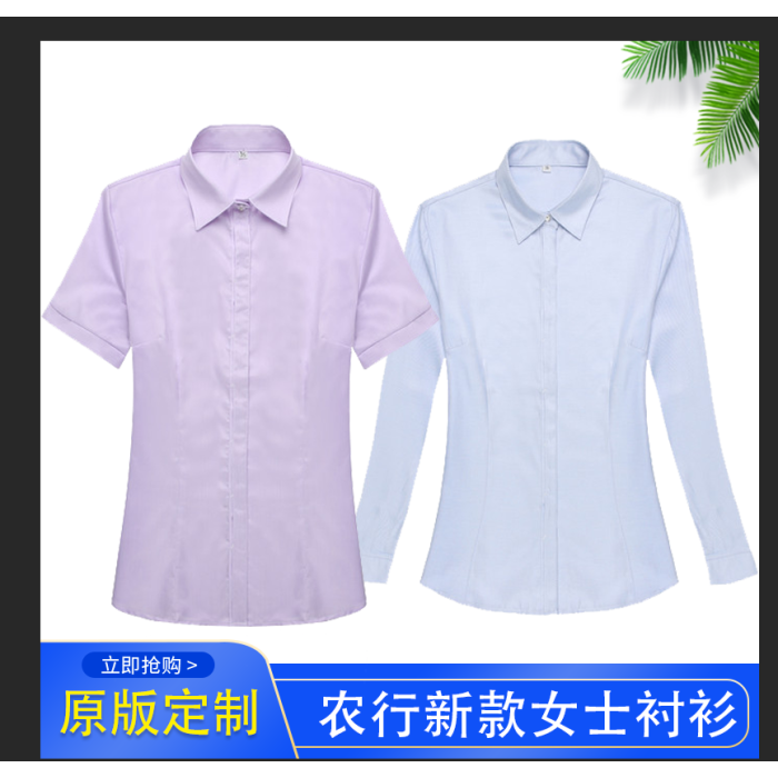 夏季新款短袖農行工作服女紫色女式襯衫行服農業銀行藍色職業裝