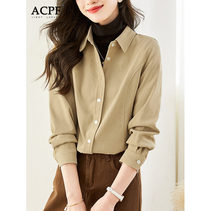 美拉德加厚內搭襯衫女長袖2025新款磨毛氣質外穿襯衣百搭曡穿上衣