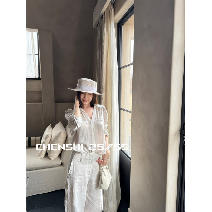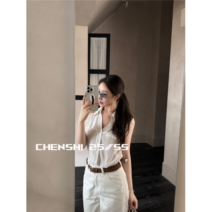CHEN SHI 簡約組 無袖/長袖版本 老錢風亞麻襯衫女夏條紋襯衣氣質