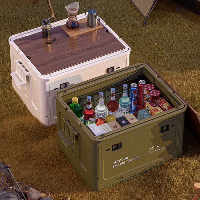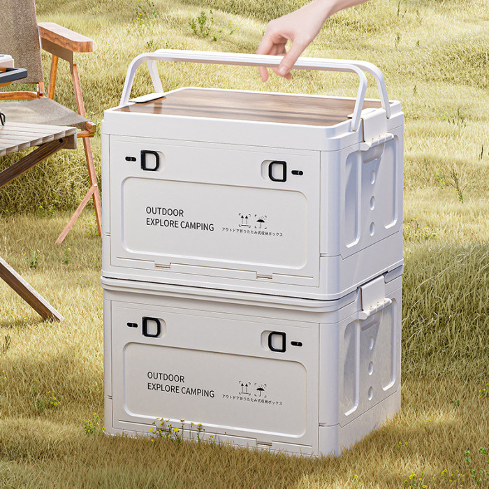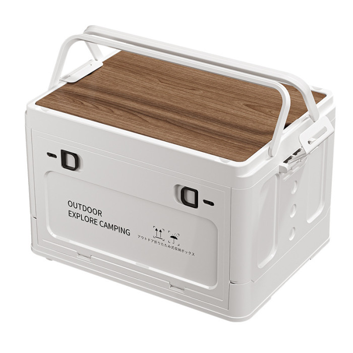 手提折曡收納箱側開車用搬運箱儲物箱野餐帶木蓋收納箱提籃禮品箱