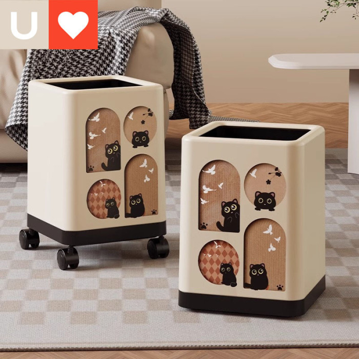 友耐滑輪垃圾桶家用客廳中古風大容量高顔值可愛卡通衛生桶帶輪子