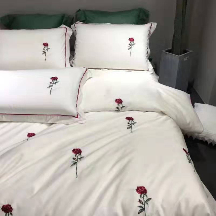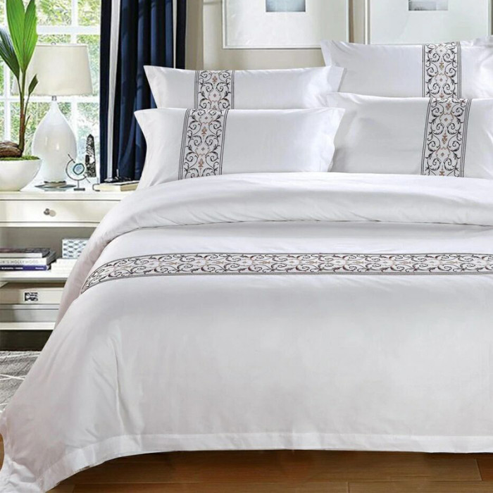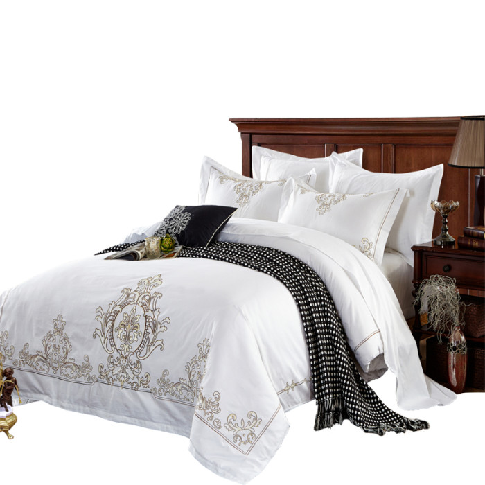 全棉五星級酒店純白床上用品綉花高支純棉60支床品賓館被套四件套