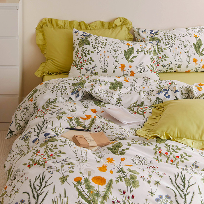 小清新純棉被套單件夏季花卉全棉雙人被罩+枕套150*200*230cm薄款