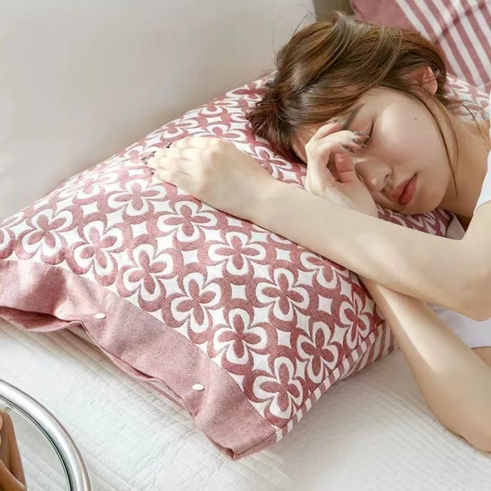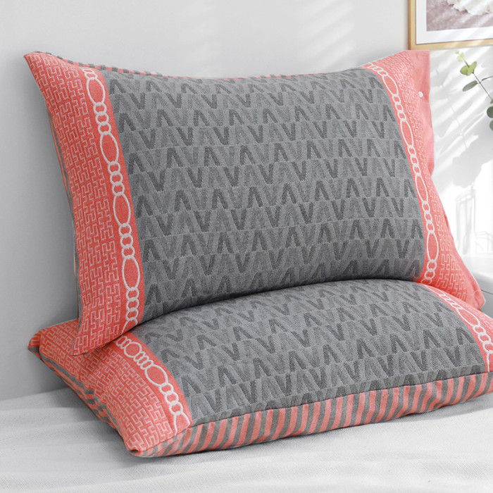 一對裝純棉枕套全棉時尚花色水洗棉純棉紗布柔軟透氣冬季大號加厚
