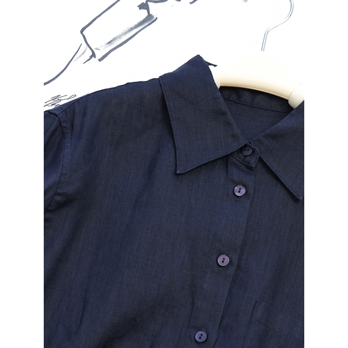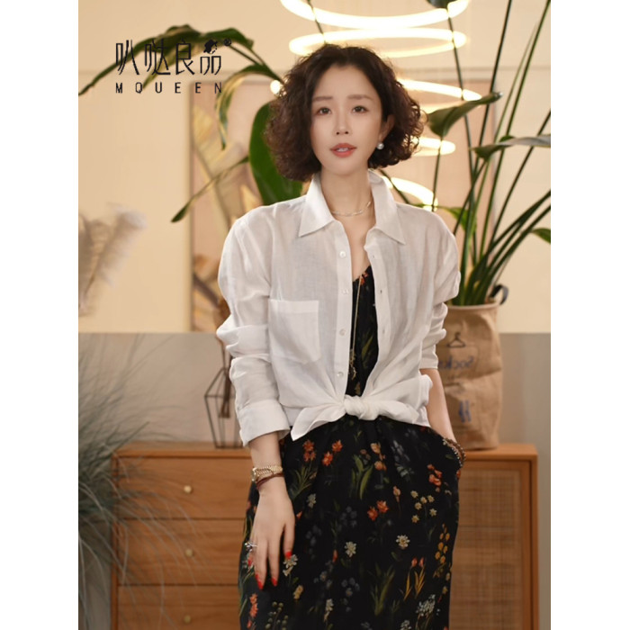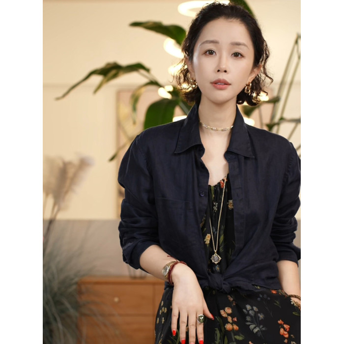 Y庫茵 叭噠不惑 痕跡 亞麻時尚休閒百搭寬松襯衫