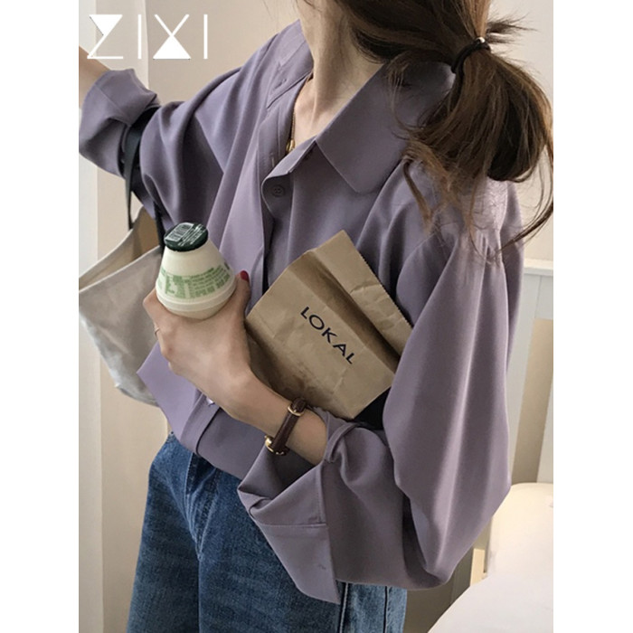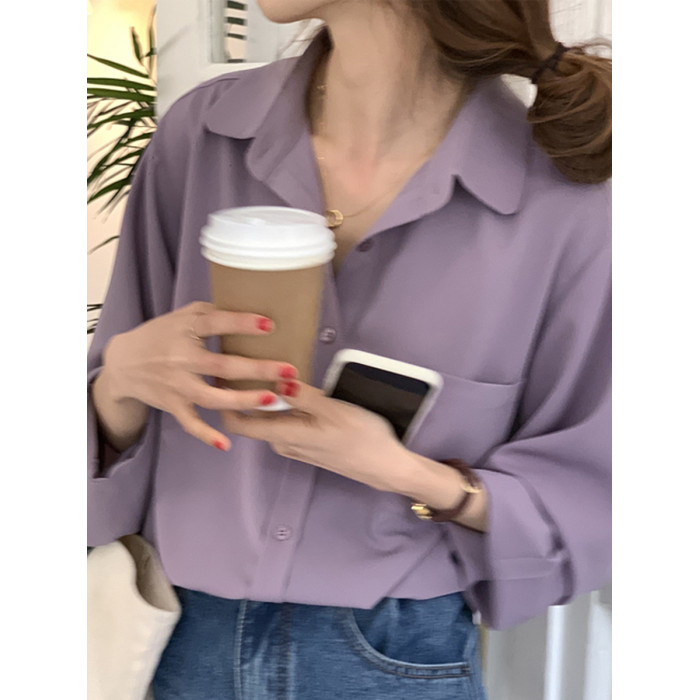 香芋紫長袖襯衫女秋季面試通勤垂感雪紡襯衣春夏季設計感小衆上衣