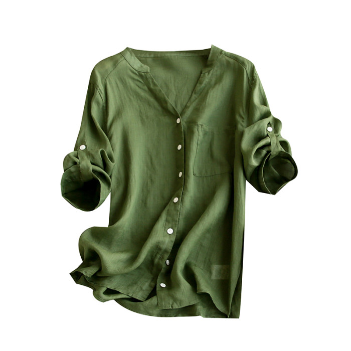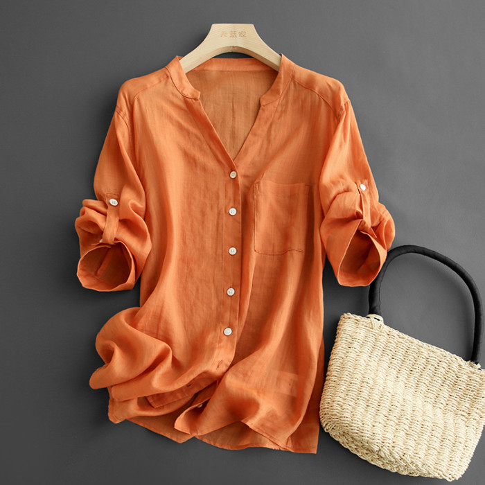 三伏天巨愛!苧麻七分/五分袖V領天絲襯衫夏季品牌高級上衣女夏