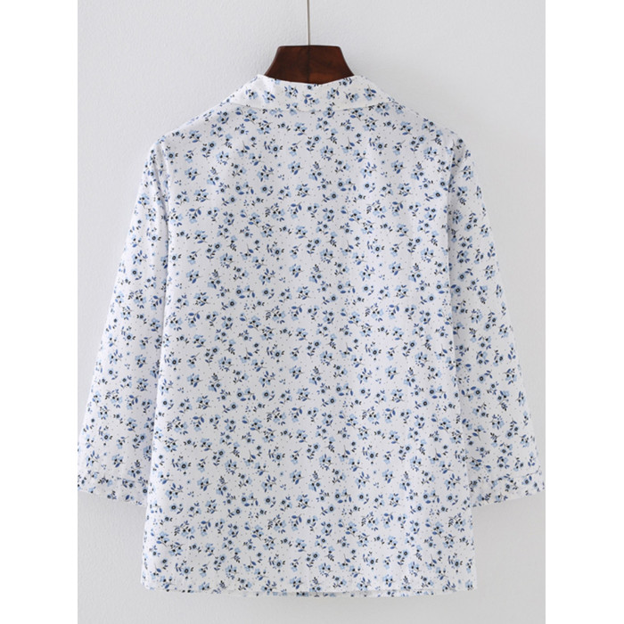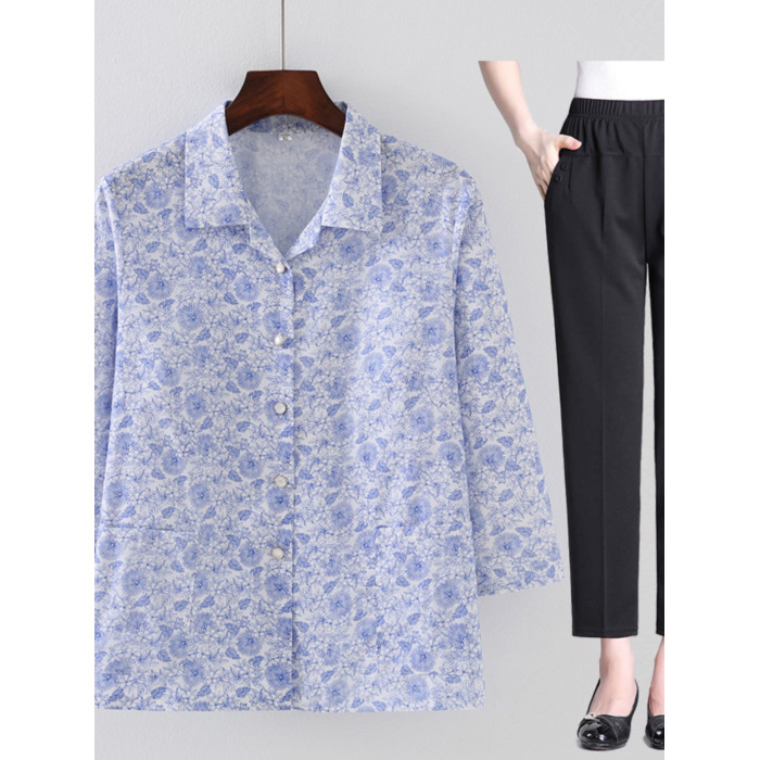 中老年人女裝夏季純棉碎花上衣老太太婆中袖全棉襯衫媽媽夏裝套裝