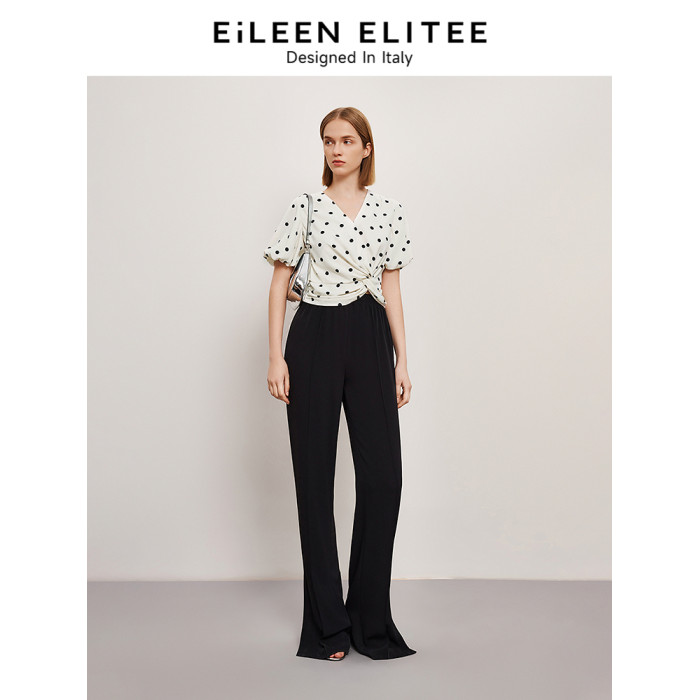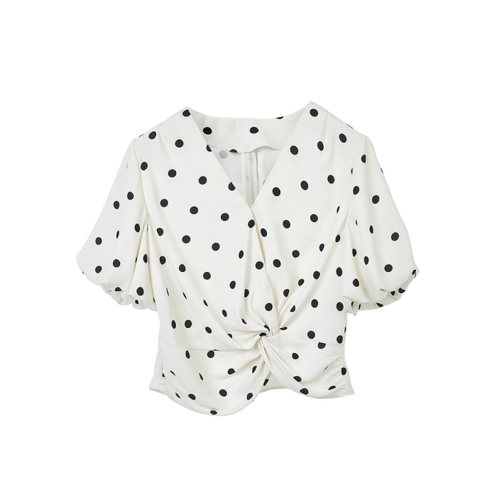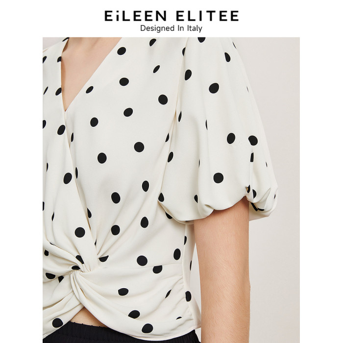 【硃珠同款】朗姿歐洲EiLEEN ELITEE泡泡袖波點襯衫夏季新款襯衣