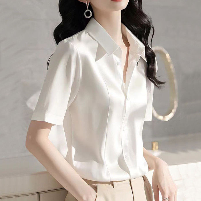 動感哥弟真絲襯衫女上衣2025夏裝新款法式桑蠶絲輕奢純色職業襯衣