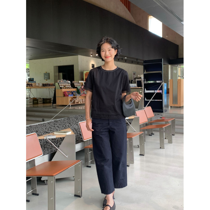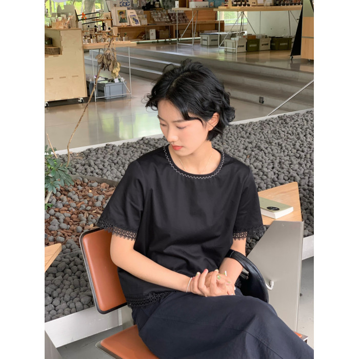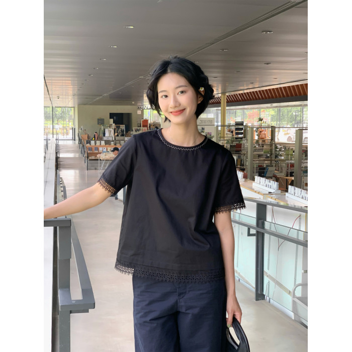 周小雅純棉鏤空花邊設計感時尚百搭2025年夏季新款上衣短袖襯衫女