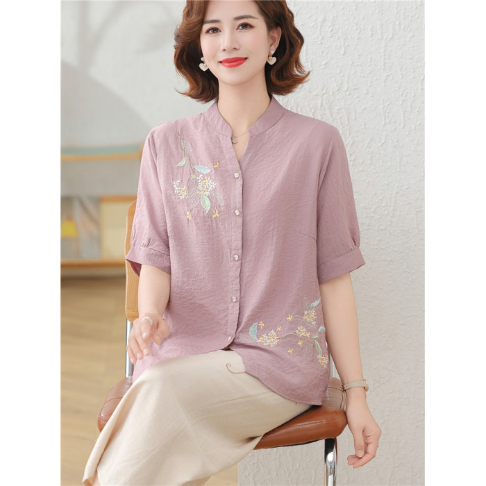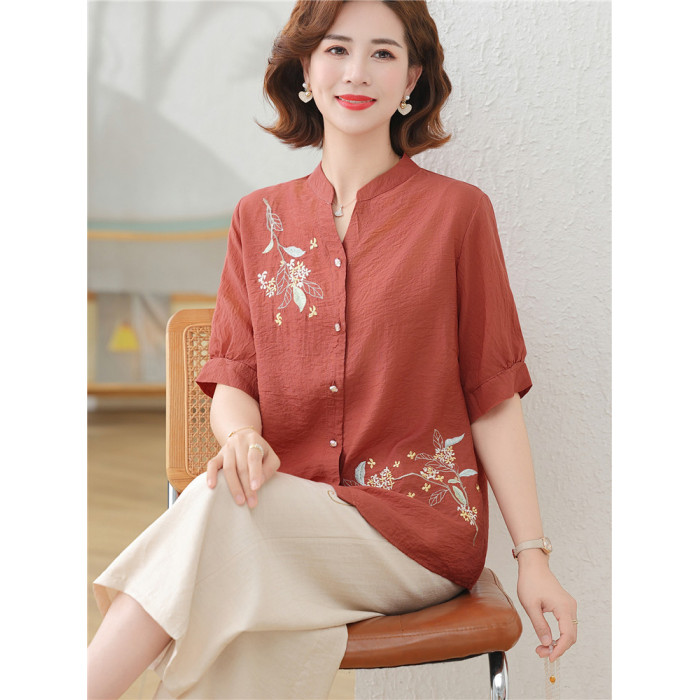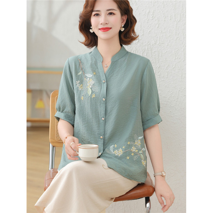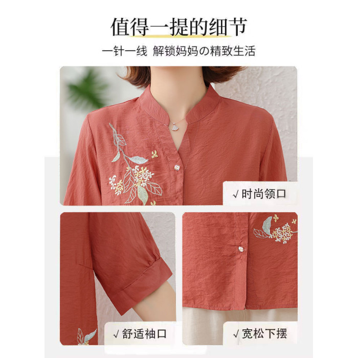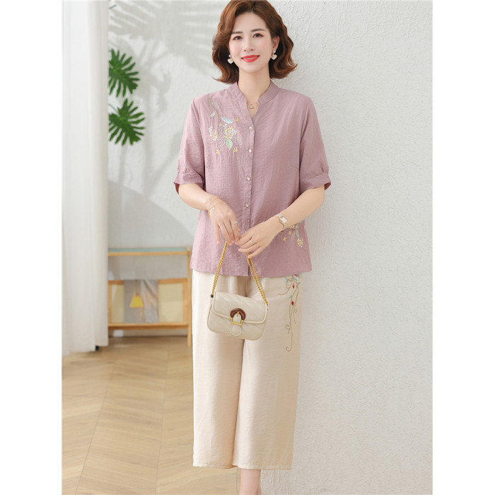 媽媽夏裝套裝2025新款洋氣中式短袖襯衫中老年女時尚夏季開衫上衣