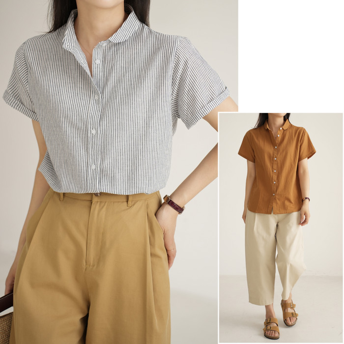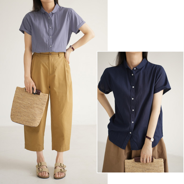 軟薄 女士水洗棉短袖襯衣 純棉透氣襯衫T恤 夏款山東網店 女裝