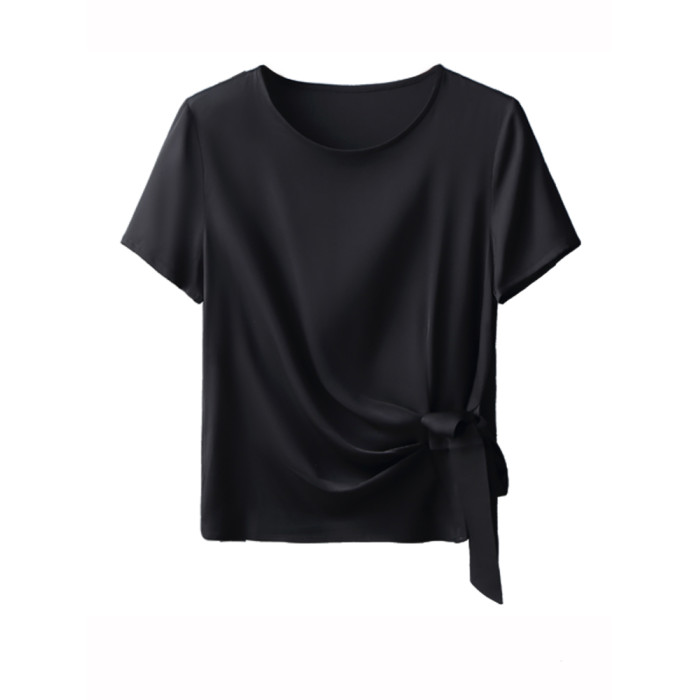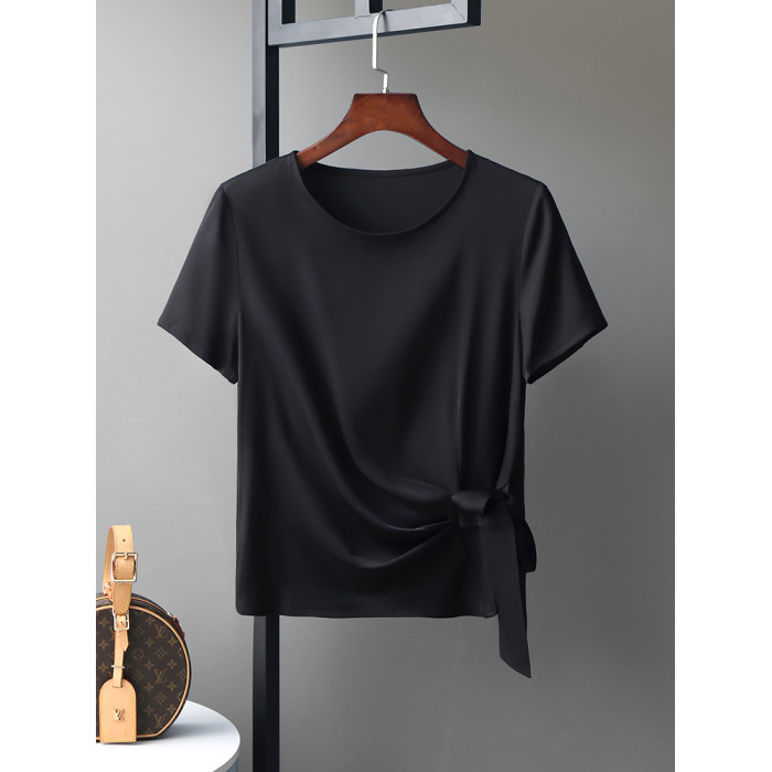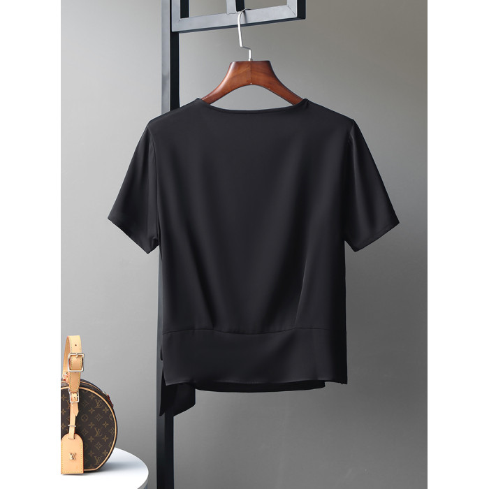 杭州重磅真絲襯衫女短袖2025夏裝新款氣質圓領媽媽顯瘦桑蠶絲上衣