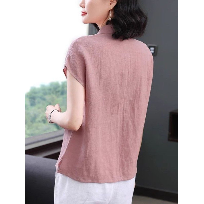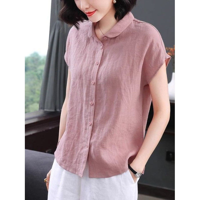 薄款亞麻襯衫女短袖2025夏季新款減齡高級棉麻上衣寬松女士襯衣