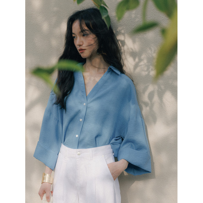 SOTHEMOS 南法假日系列 2色抗皺涼感亞麻設計感大袖子襯衫夏季