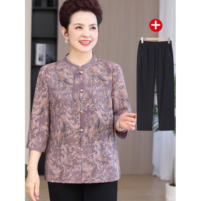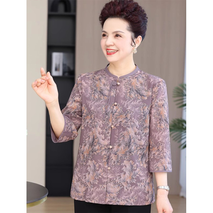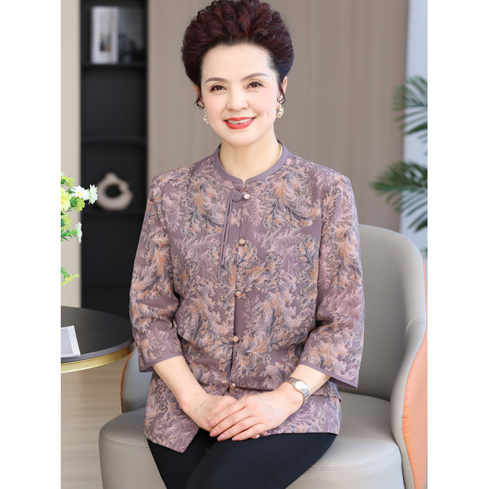 中老年人夏裝女襯衫奶奶裝媽媽衣服60嵗70老太太上衣夏季開衫薄款