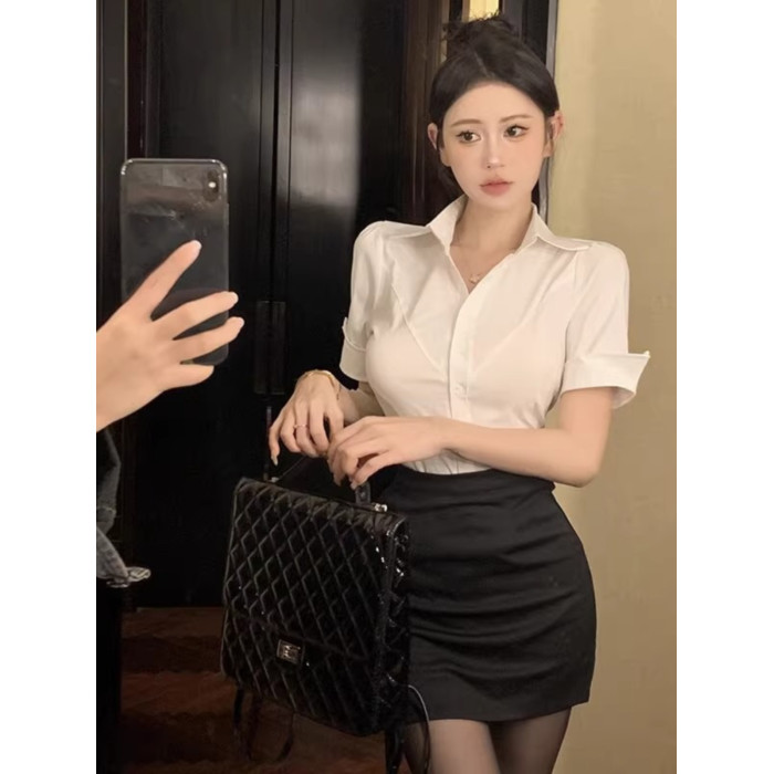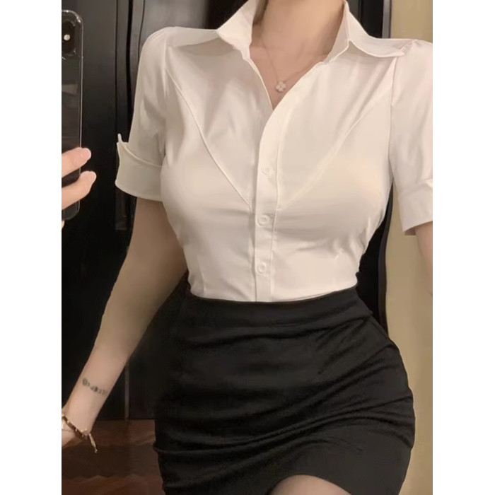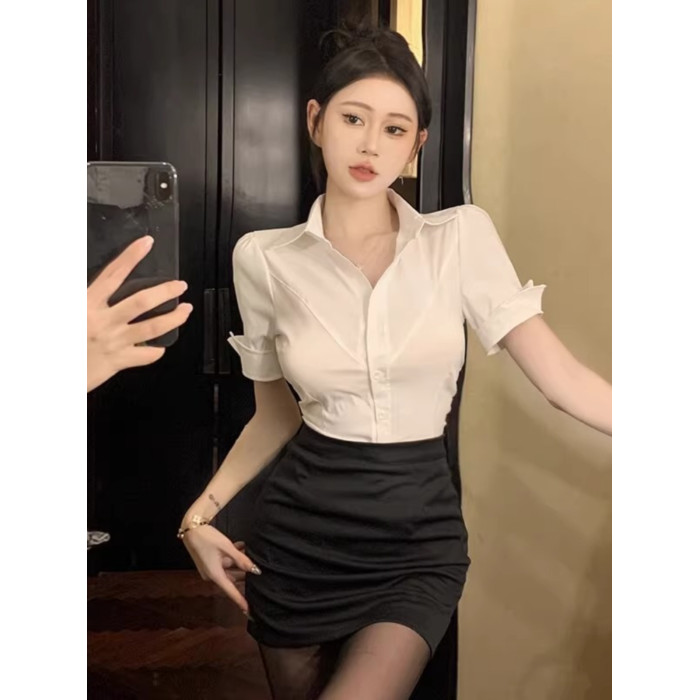 純欲通勤職業收腰白襯衫女夏季修身性感包臀裙足浴技師工作服套裝