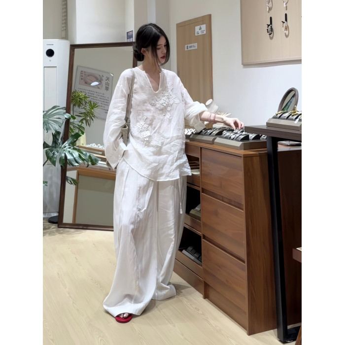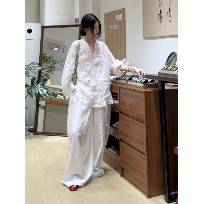 浮雲織夢~新中式復古氣質立體浮雕手工刺綉長袖襯衫防曬上衣女夏