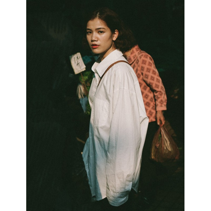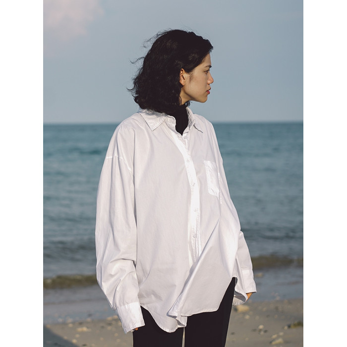 白襯衫女寬松棉百搭外穿防曬襯衣外套春秋復古港味設計感小衆慵懶