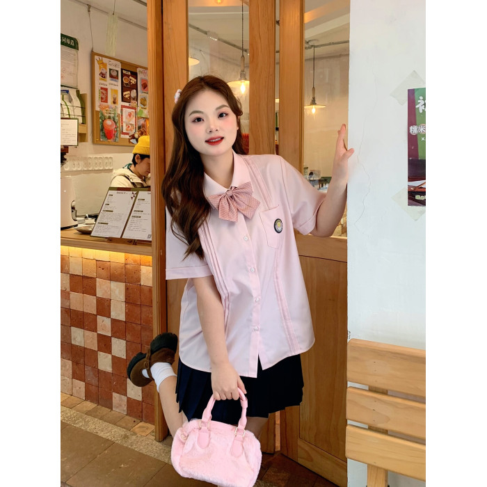 阿車家的大碼jk胖mm原創日系長短袖襯衫女學院風甜美百搭粉色襯衣