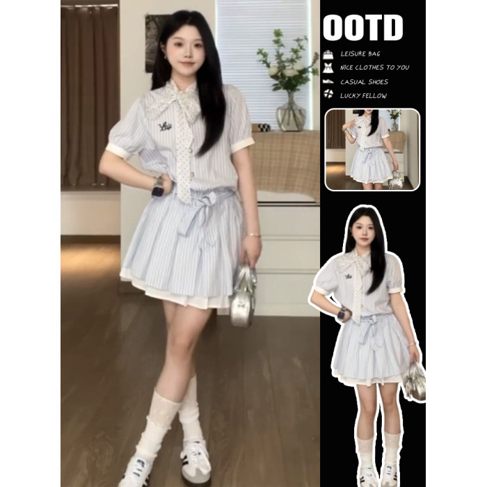 【淺藍條紋】【夏季流行單品/通勤穿搭/減齡ins超火/獨特別致/江浙滬千金/海邊度假/收腰a字/小個子/輕奢高級感/清純系夏日】