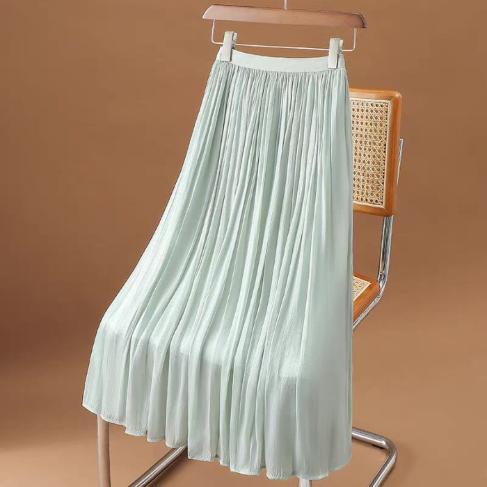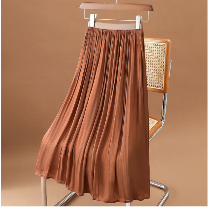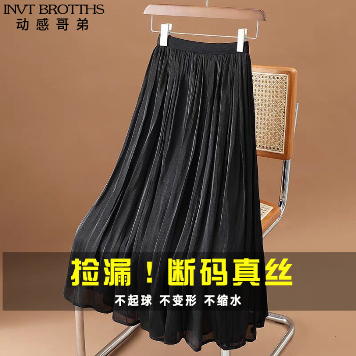 動感哥弟高級感流光真絲半身裙女夏款遮跨大擺A字長裙垂感百褶裙