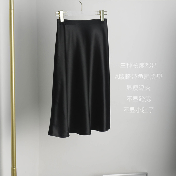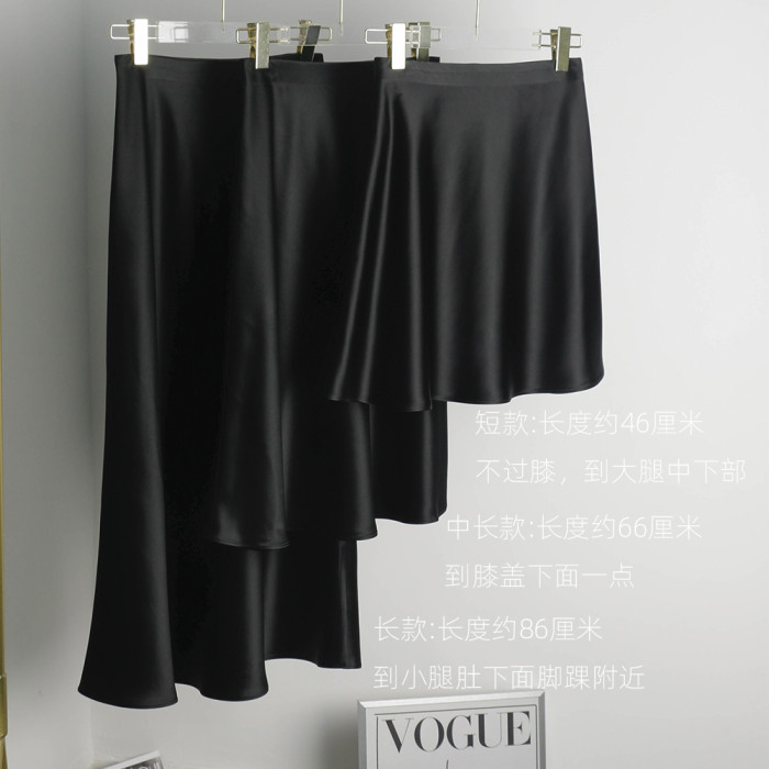 松緊腰三醋酸半身裙女小黑裙黑色短中長款百搭顯瘦腿長垂感繖裙