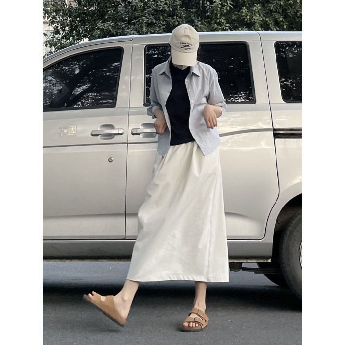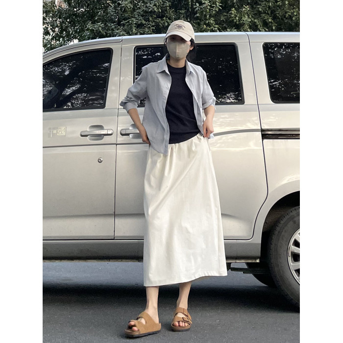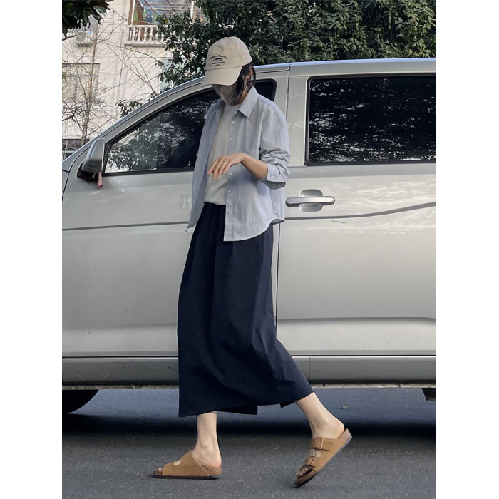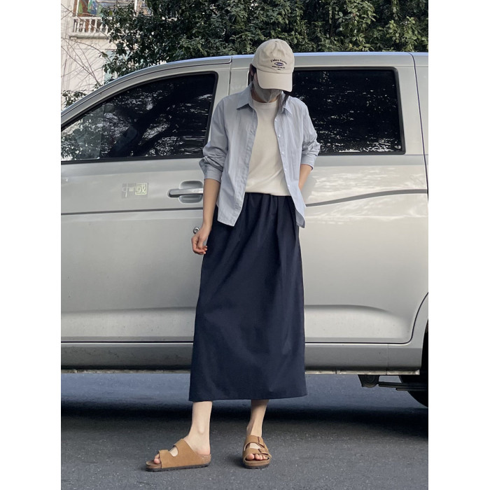 左手日記25夏新藏青色減齡花苞裙顯瘦遮肉A字蓬蓬裙亞麻半身裙夏