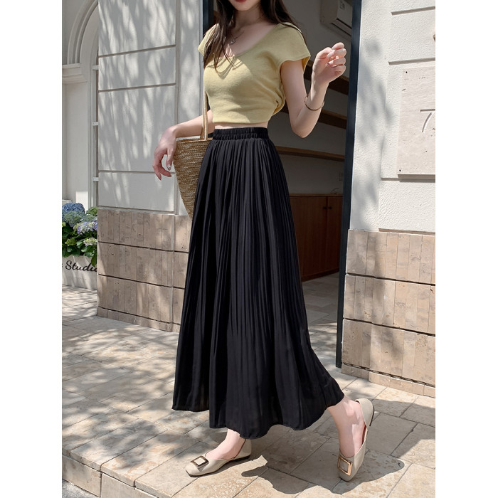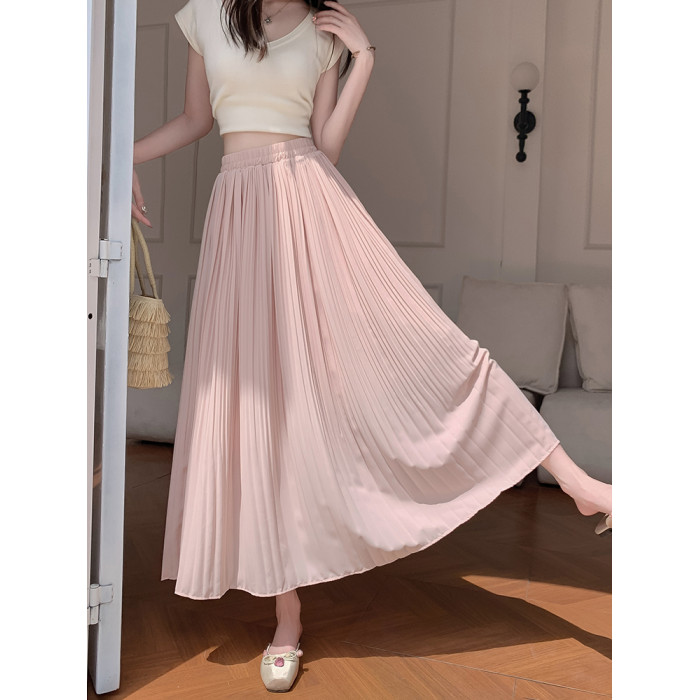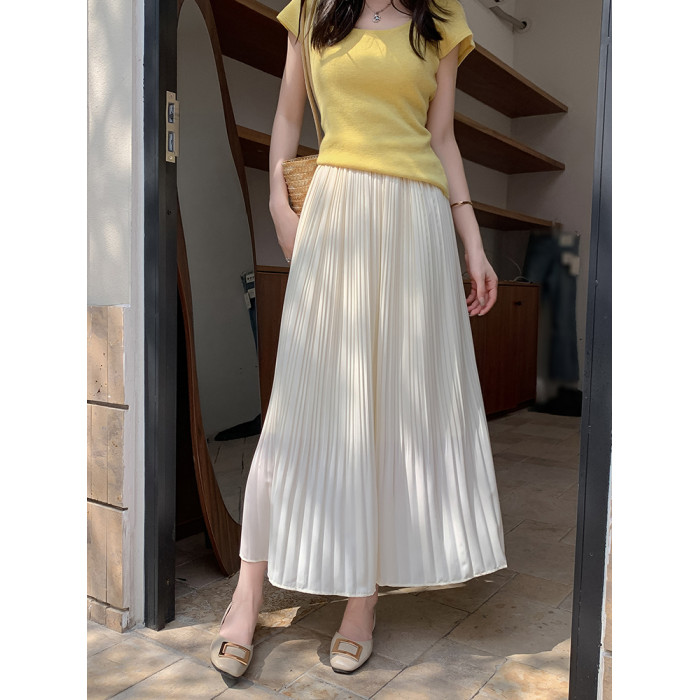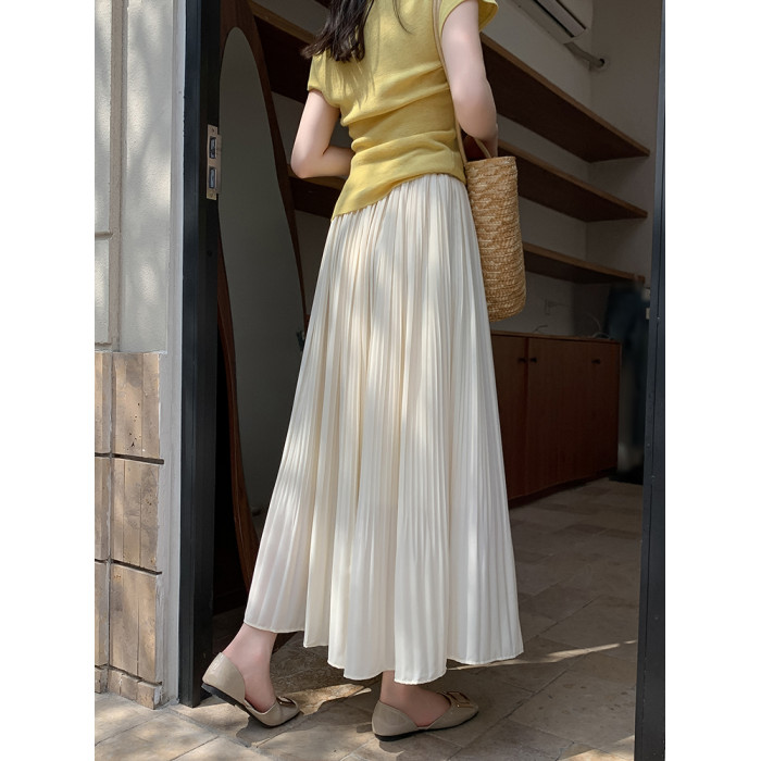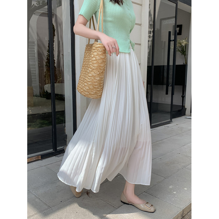設計感白色雪紡百褶裙女夏季a字裙高腰顯瘦中長款仙女大擺半身裙