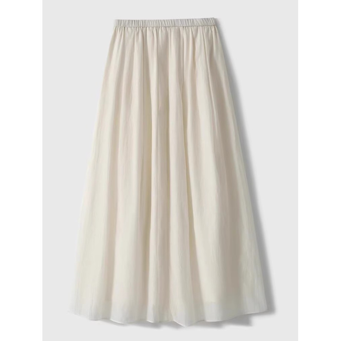 柔光拂夏|桑蠶絲+棉前後開叉設計松緊腰半身裙女A字中長裙夏新