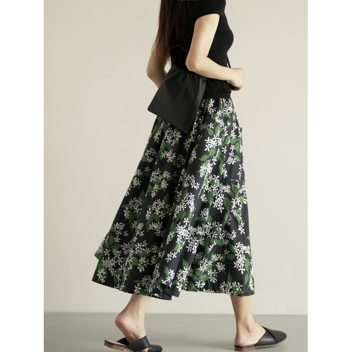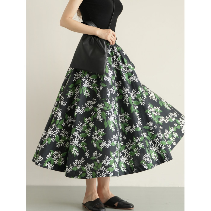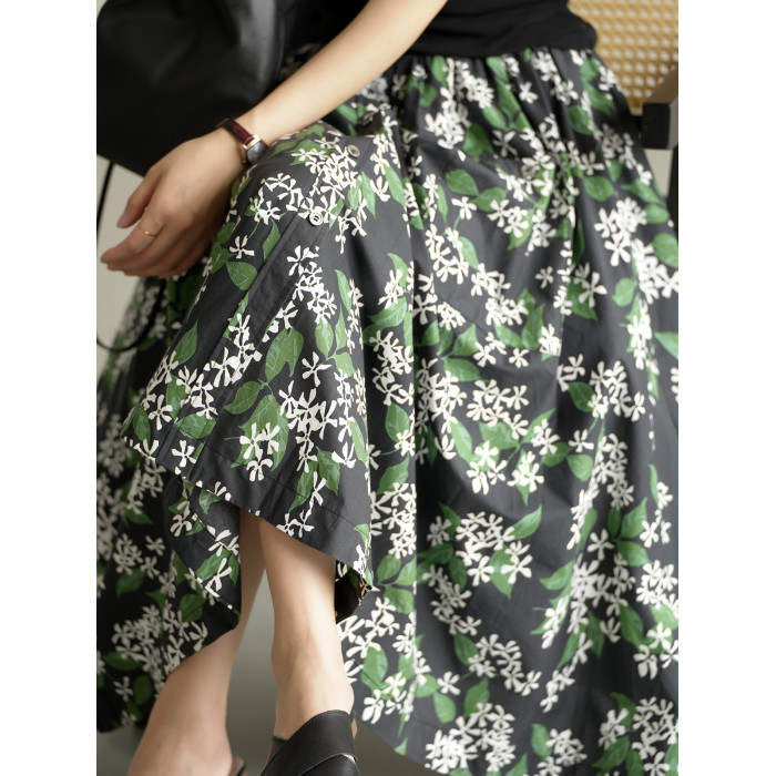 法式復古碎花半身裙 女士60支全棉A字繖裙 中長款裙子 夏款 女裝