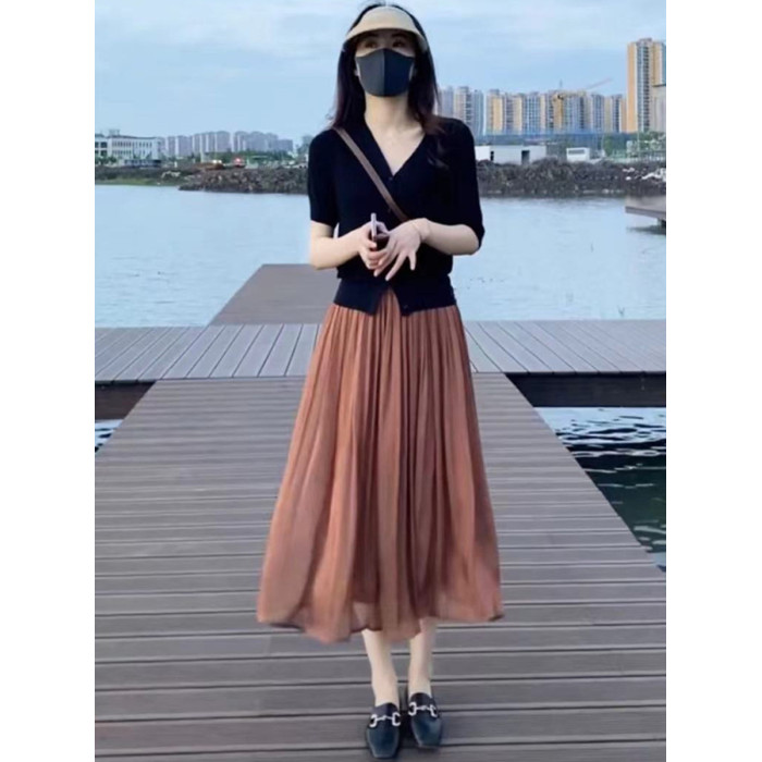 紗裙女半身裙2025夏季新款百褶繖裙大碼中長款超仙女琉璃網紗長裙
