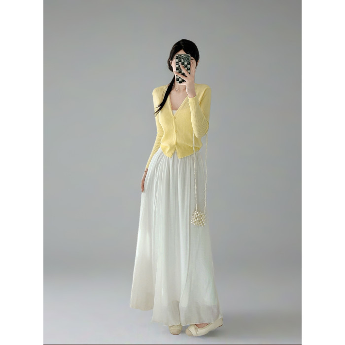 奶白色棉麻大擺半身裙抗皺女2025夏秋新款高腰顯瘦長裙垂感拖地裙