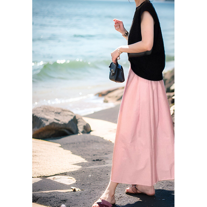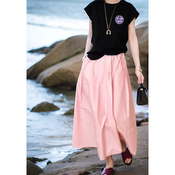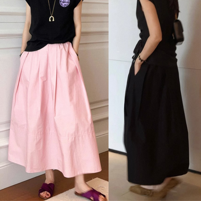 2025女春夏季粉色中長款半身裙 大梨子友好裙型口袋A字繖裙半裙