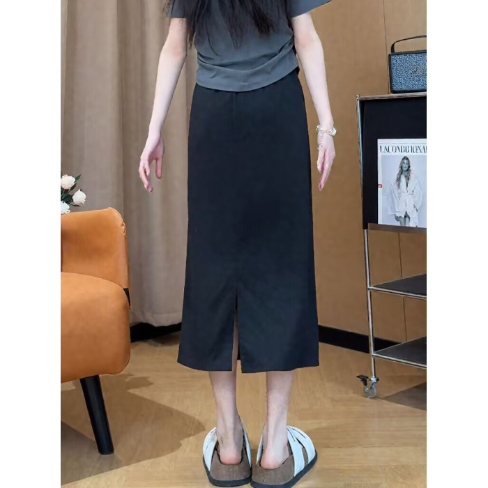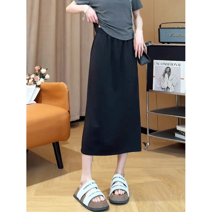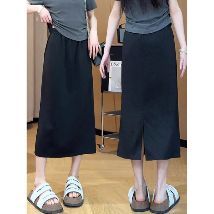 胖mm高腰梨形身材A字裙夏裝新款大碼寬松百搭中長款後開叉半身裙