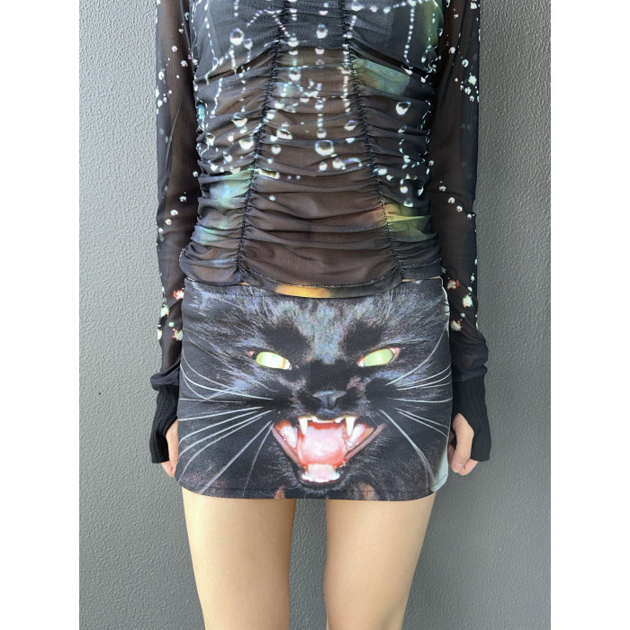 Furchin SS2025 印花彈力帶打底褲小衆美式辣妹低腰超短裙A字裙