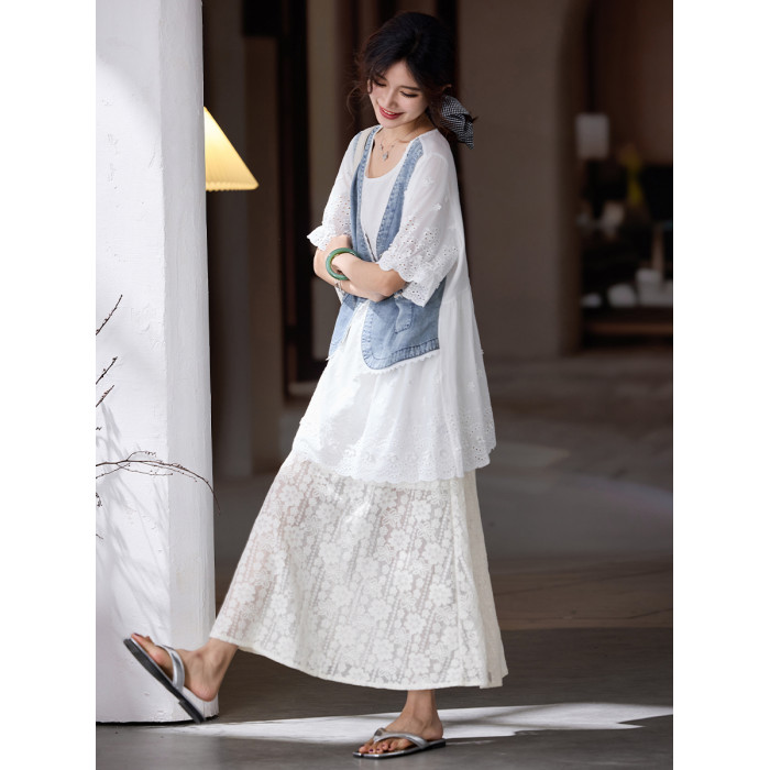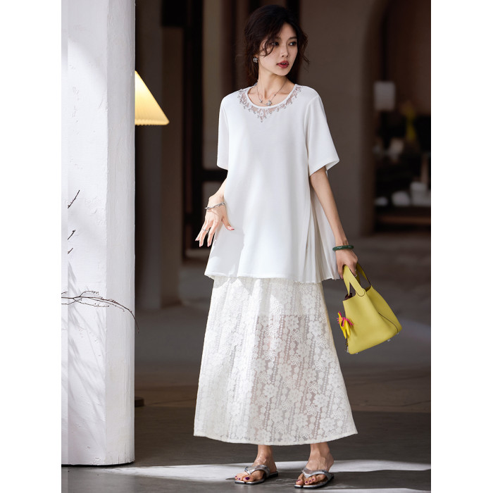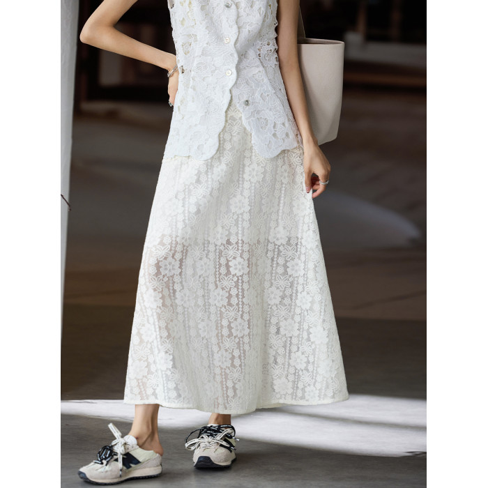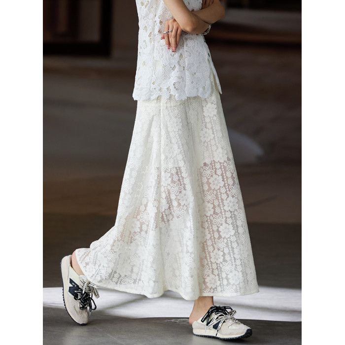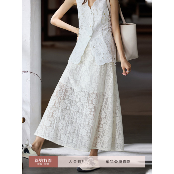 素木時尚蕾絲松緊腰半身裙女夏季2025年新款寬松裙子歐貨大碼女裝
