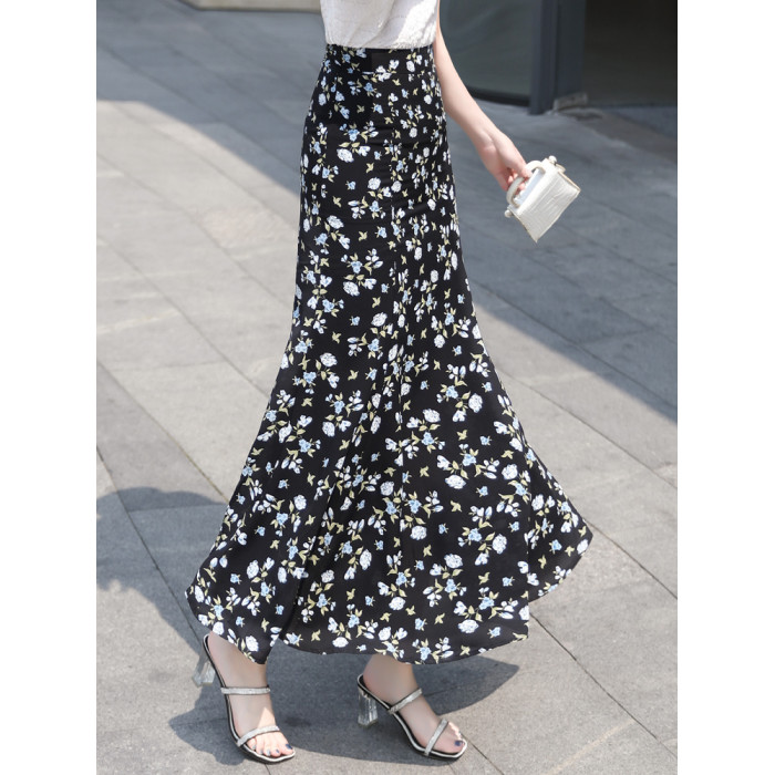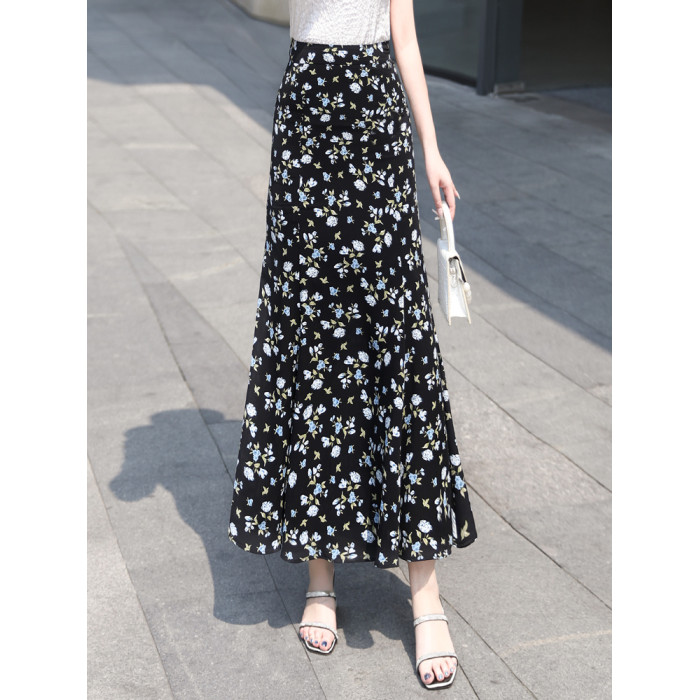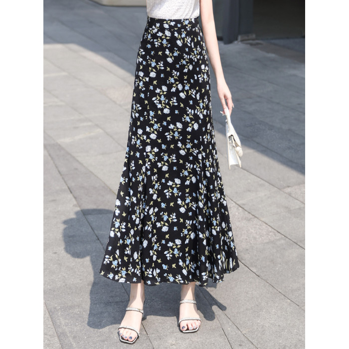 碎花半身長裙女夏季2025新款長款氣質印花裙子包臀魚尾裙半身裙