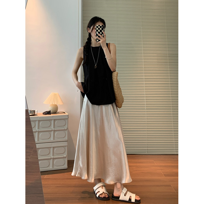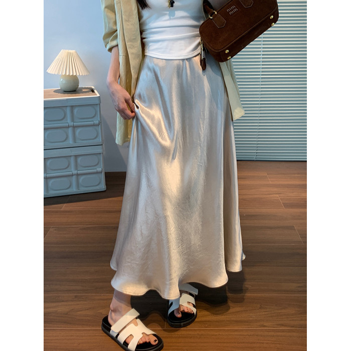 醋酸半身裙女夏新款緞面高級肌理垂感氣質A字月光裙中長款魚尾裙