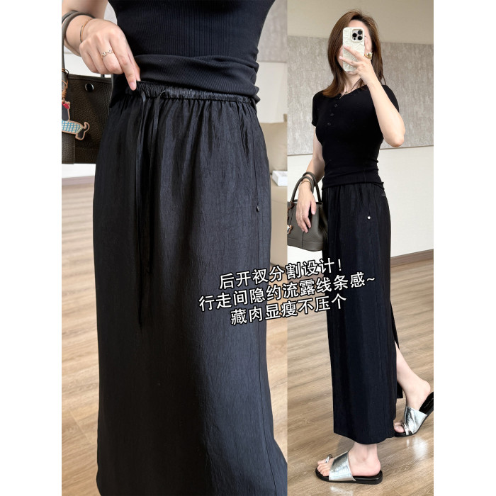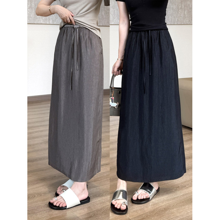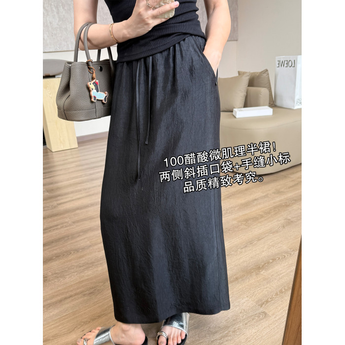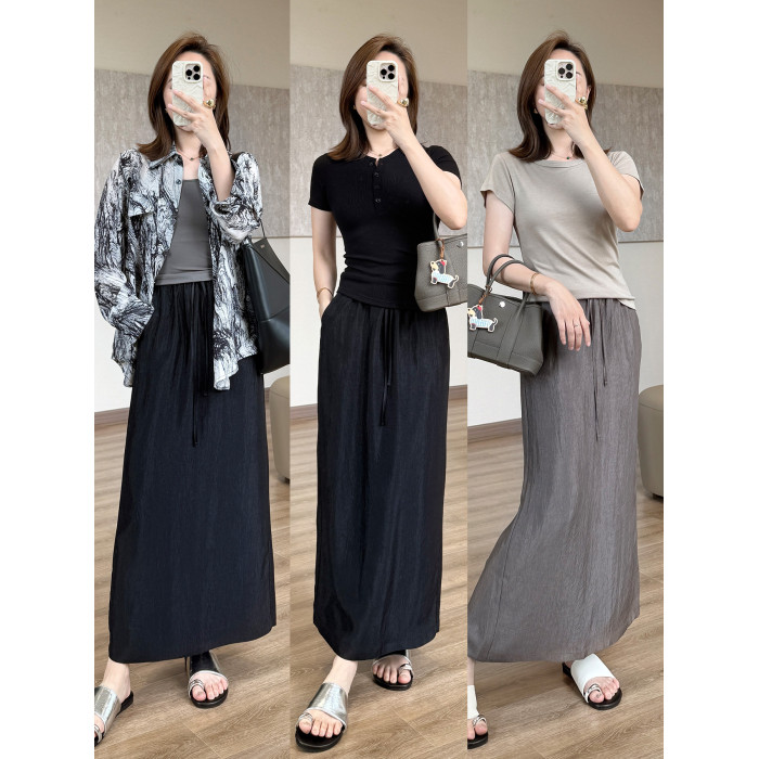 靚小靚 100醋酸氣質長裙【遮陽遮肉/輕垂/涼感】高奢肌理感半身裙