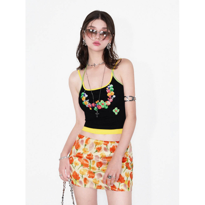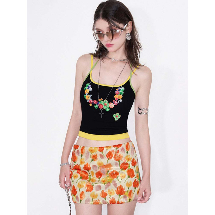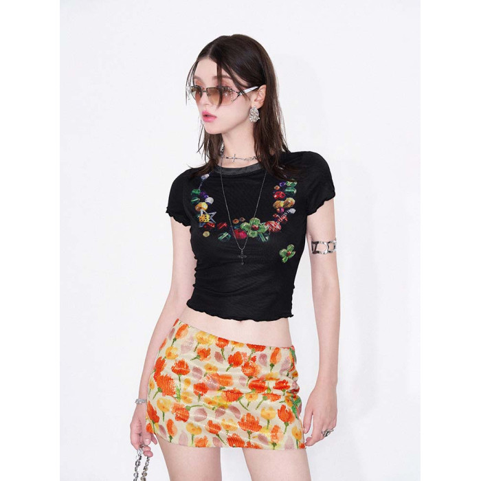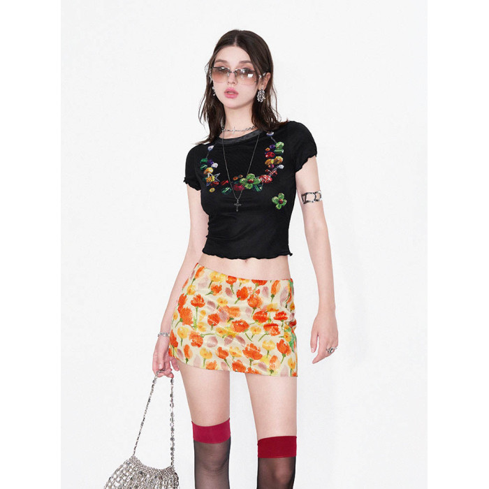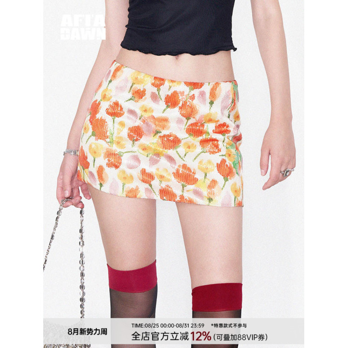 AFTADAWN | “摩洛哥之旅”彩色花卉植物系印花亮片包臀半身短裙