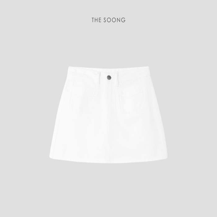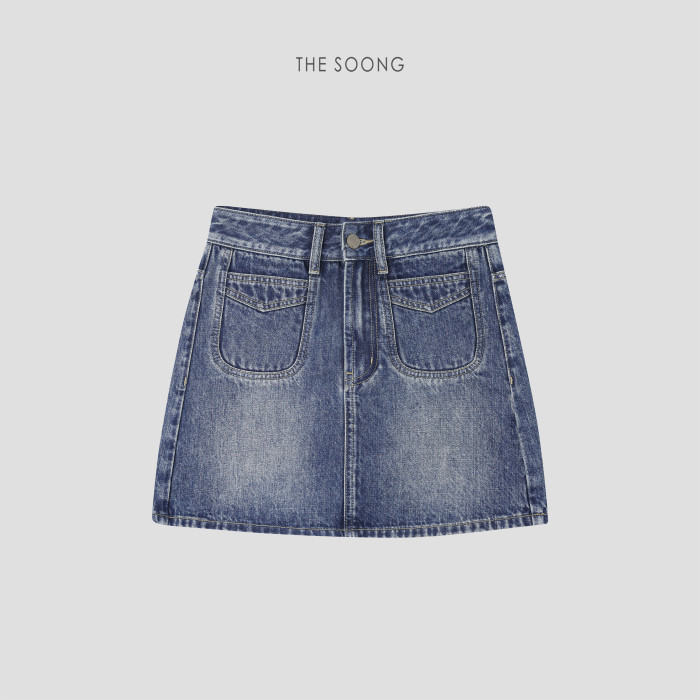 THESOONG/南法盛夏 復古洗水輕薄中腰A字口袋牛仔短裙