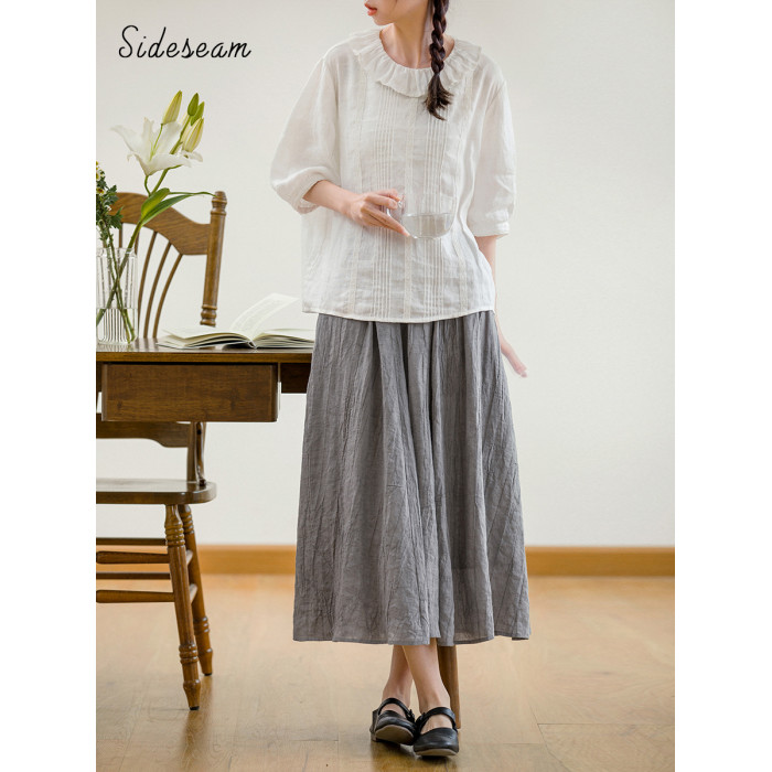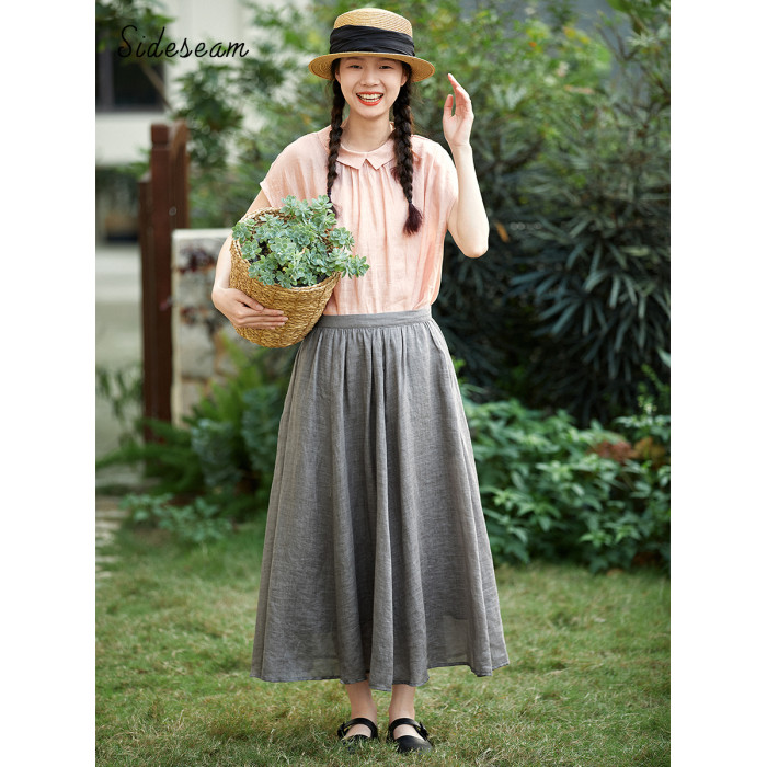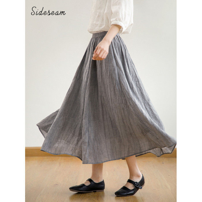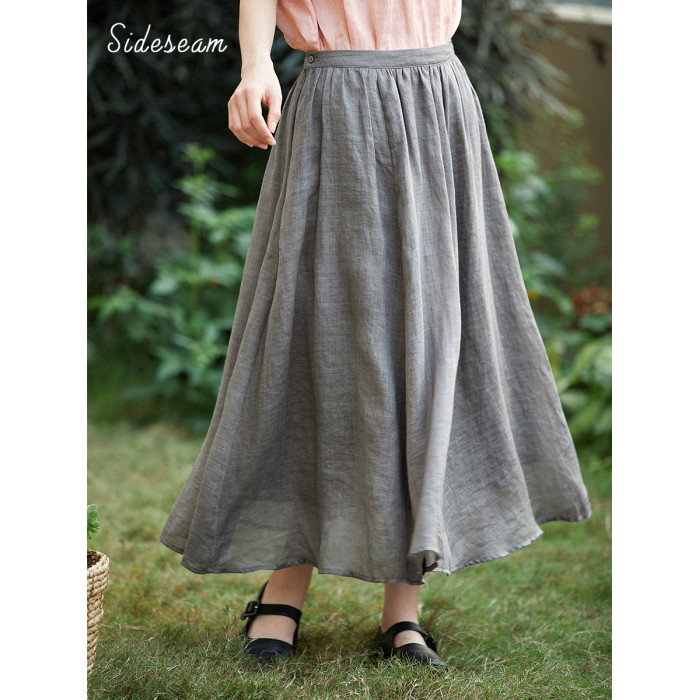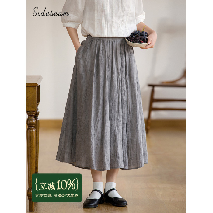 邊縫原創天絲麻半身裙女2025新款夏薄款小個子灰色a字裙高腰長裙