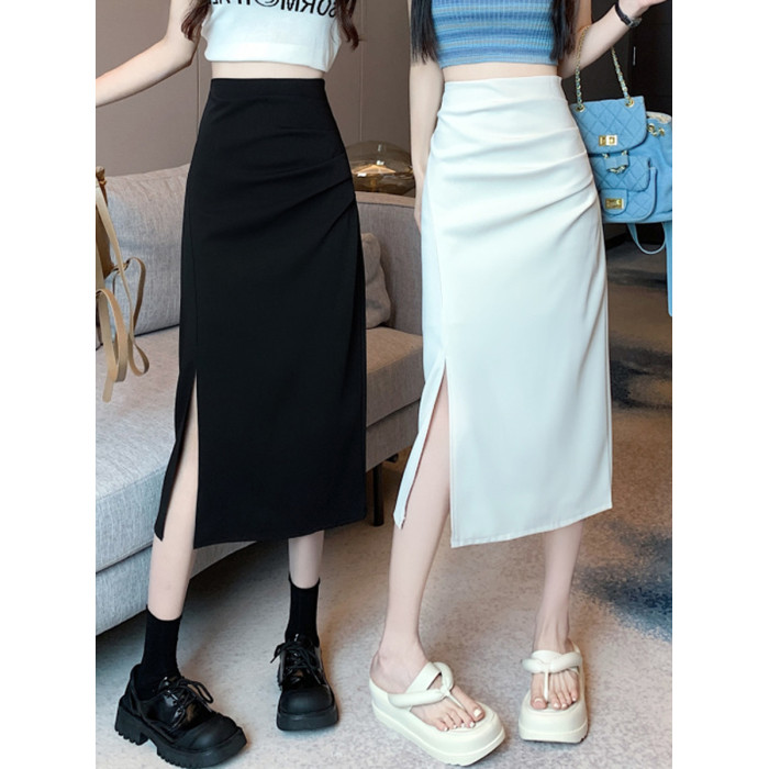 高腰開叉半身裙女春夏季設計感小衆裙子粉色半裙包臀中長款a字裙