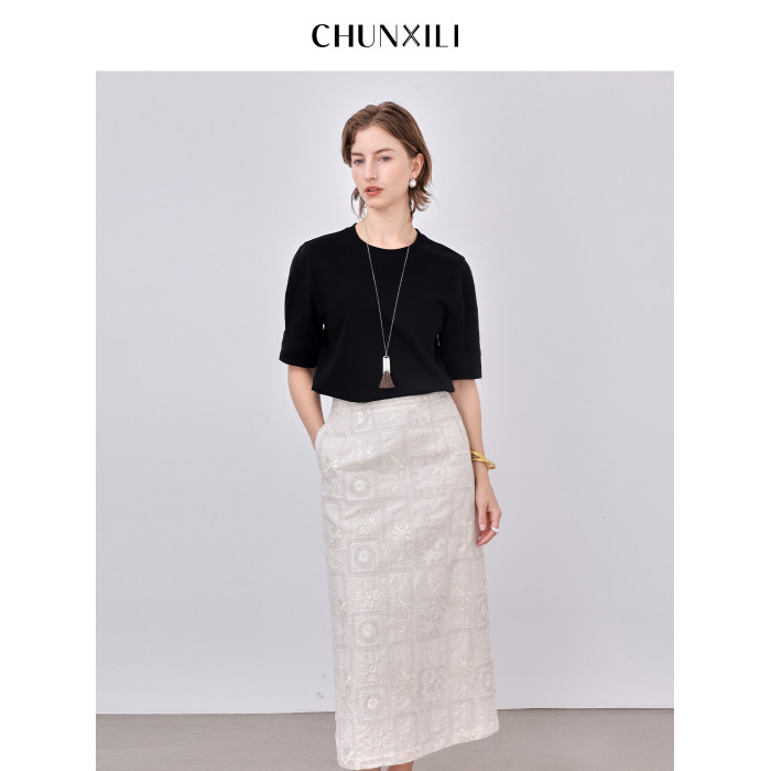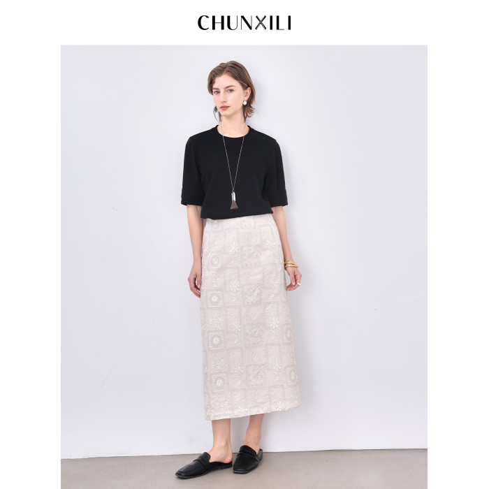 chunxili/春熙裡 夏季新品裙子重工雕花蕾絲設計感小衆包臀半身裙